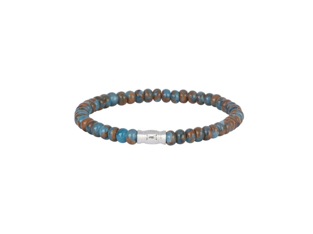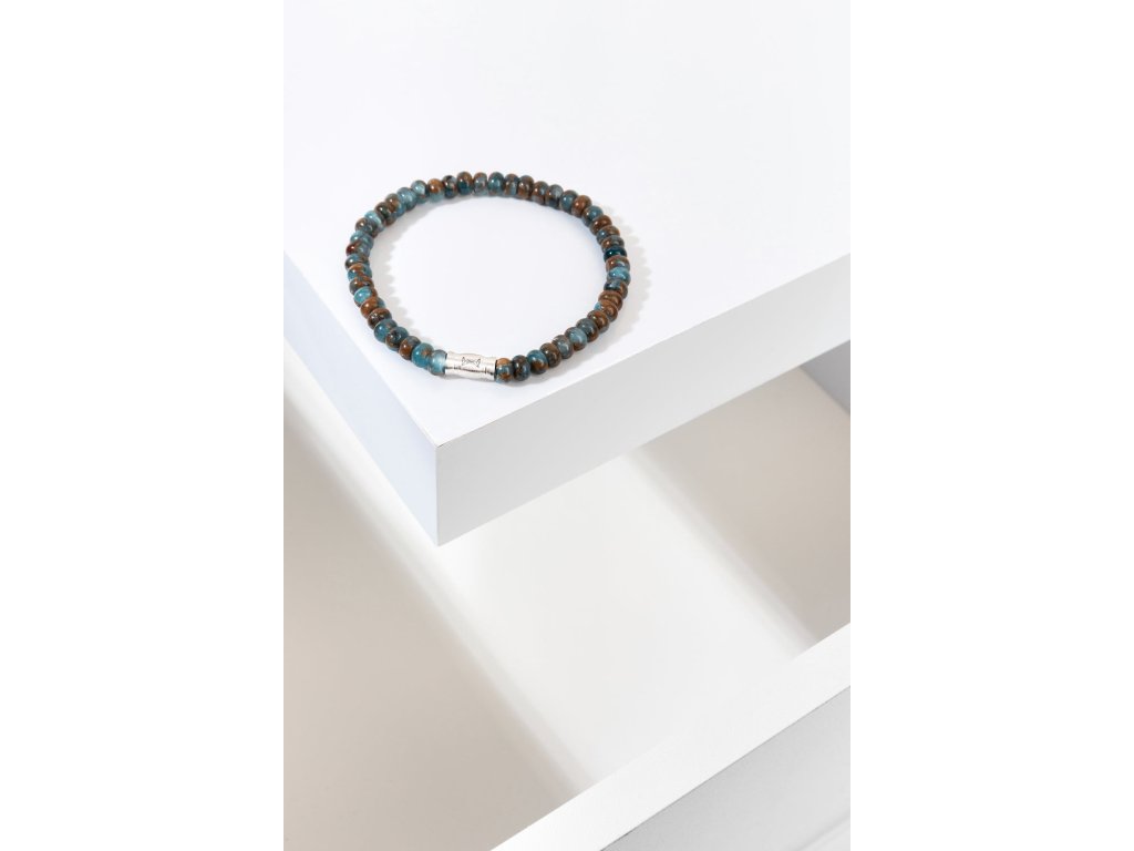 Vyrobené zo 6 mm hladkého oválneho tvaru modrého jaspisu a jemného strieborného 925/1000 brúseného zámku. Pevná elastická šnúrka drží tento náramok pohromade a zaisťuje pohodlné nosenie. Skombinujte tento náramok s ostatnými šperkami Aze a dodajte svojmu vzhľadu štýlový extra nádych.