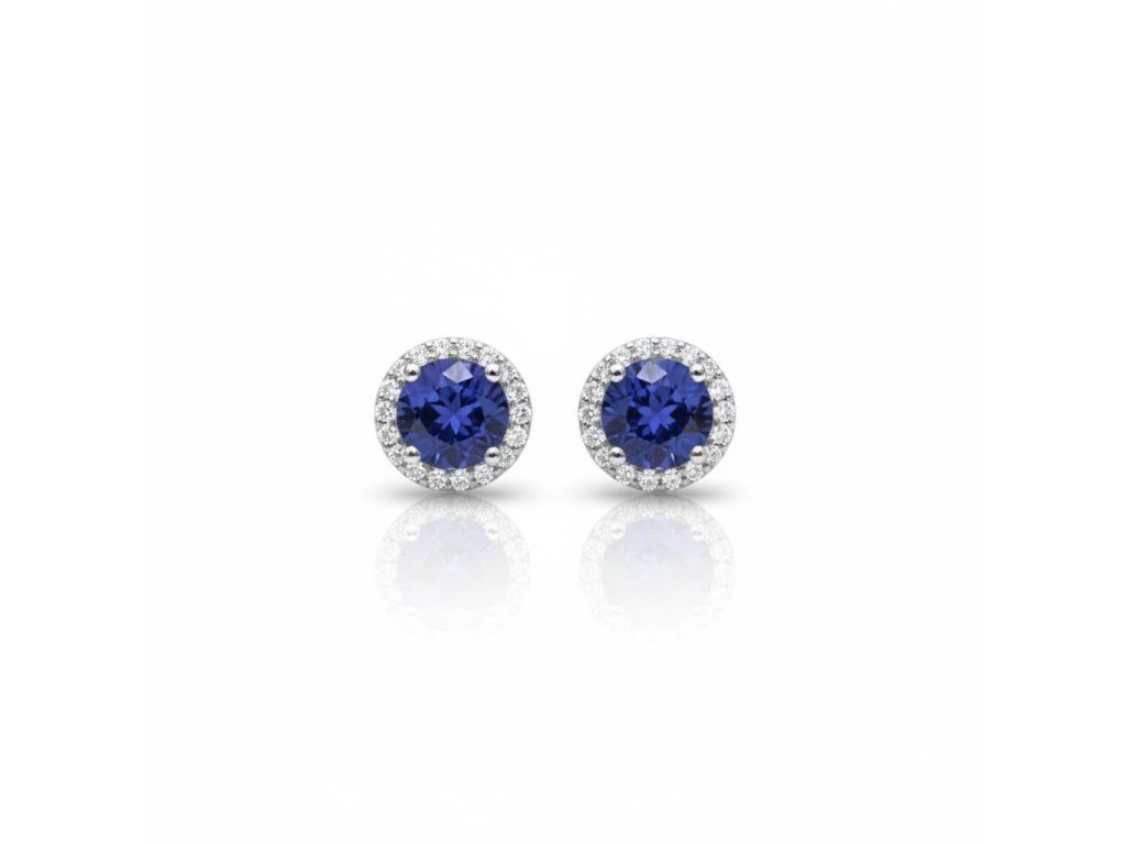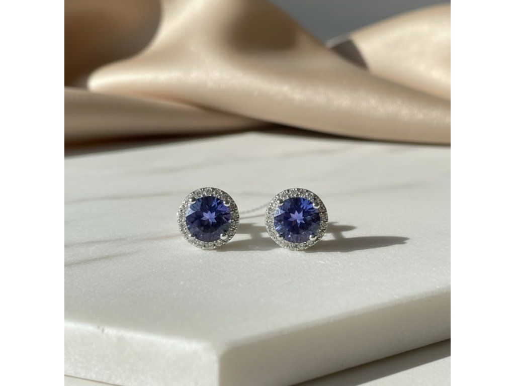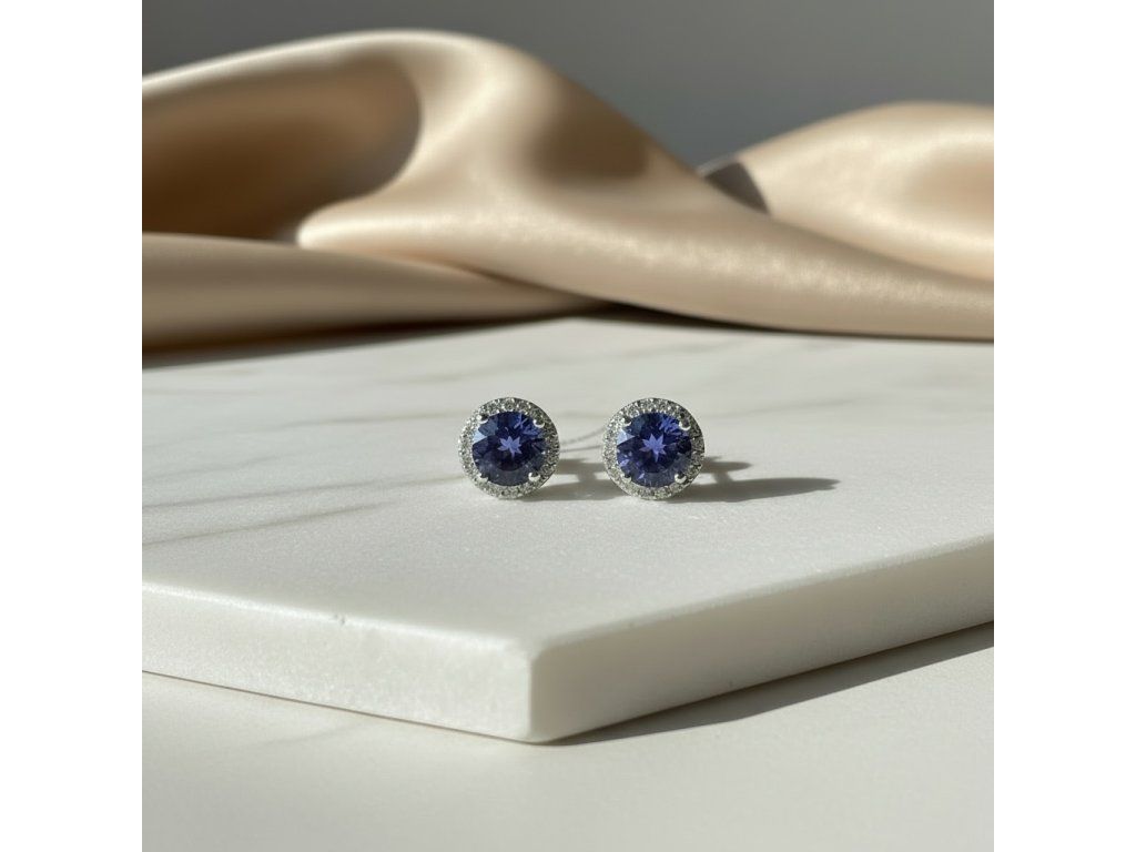 Briliantové napichovacie náušnice s Tanzanitom zo 14K zlata