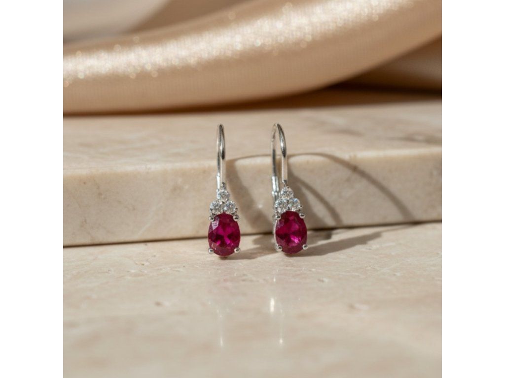 Briliantové visiace náušnice s jemným Rubínom zo 14K zlata
