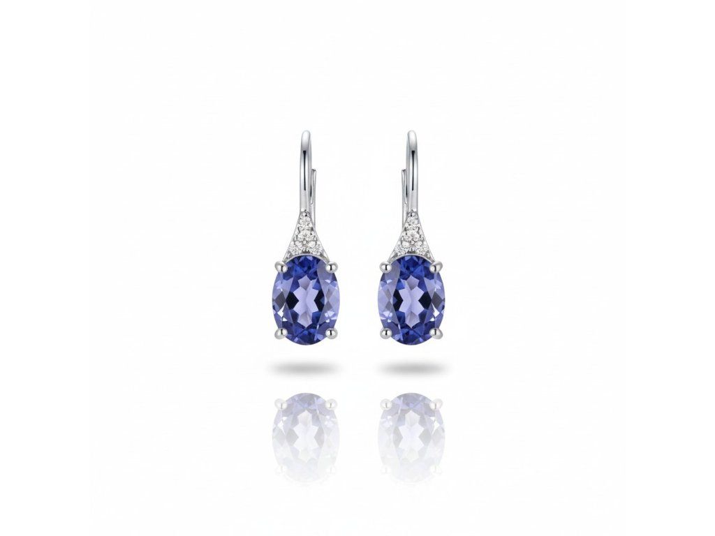 Briliantové náušnice s tanzanitom z 14K bieleho zlata