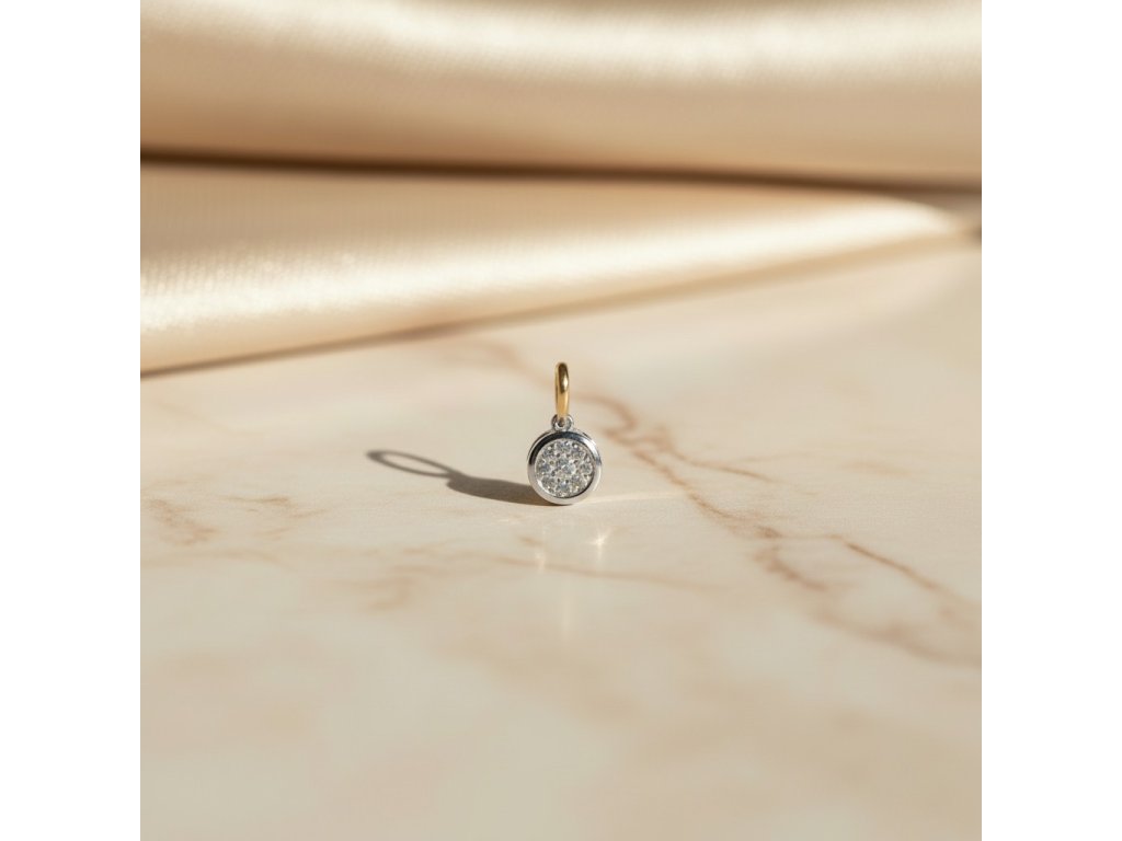 Briliantový okrúhly bicolor prívesok 0,15ct. z 14k zlata 0,63g