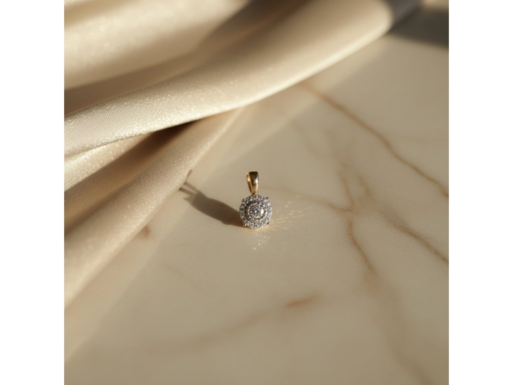 Briliantový okrúhly prívesok zo 14K žltého zlata 0,89g