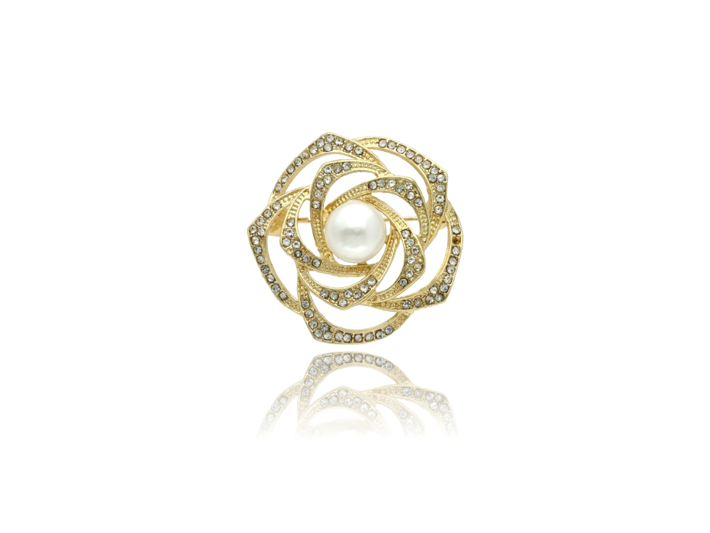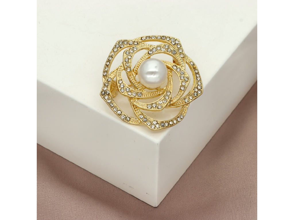 Brošňa s perlou a zirkónmi v tvare ruže BR97473
