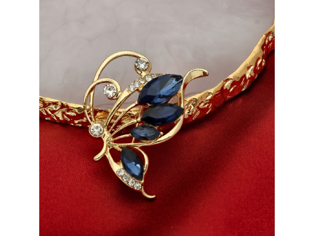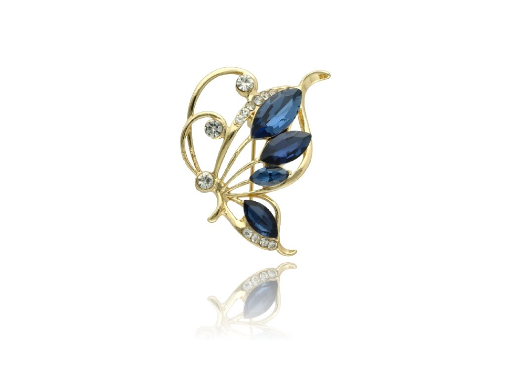 Brošňa v tvare motýľa s modrými zirkónmi v zlatom tóne BR97300