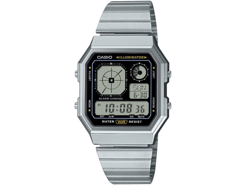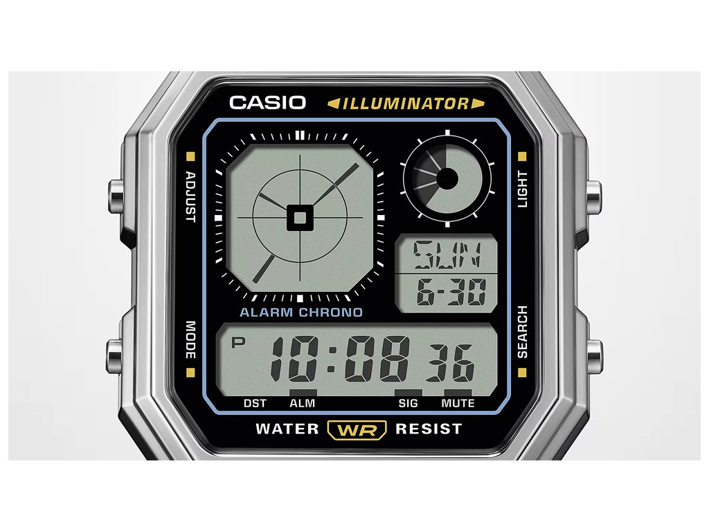 | Funkcie: | Stopky, 12/24 hodinový formát, 5 budíkov, Automatický kalendár, Hodinový signál, Odpočítavacie stopky, Osvetlenie displeja, Svetové časy |