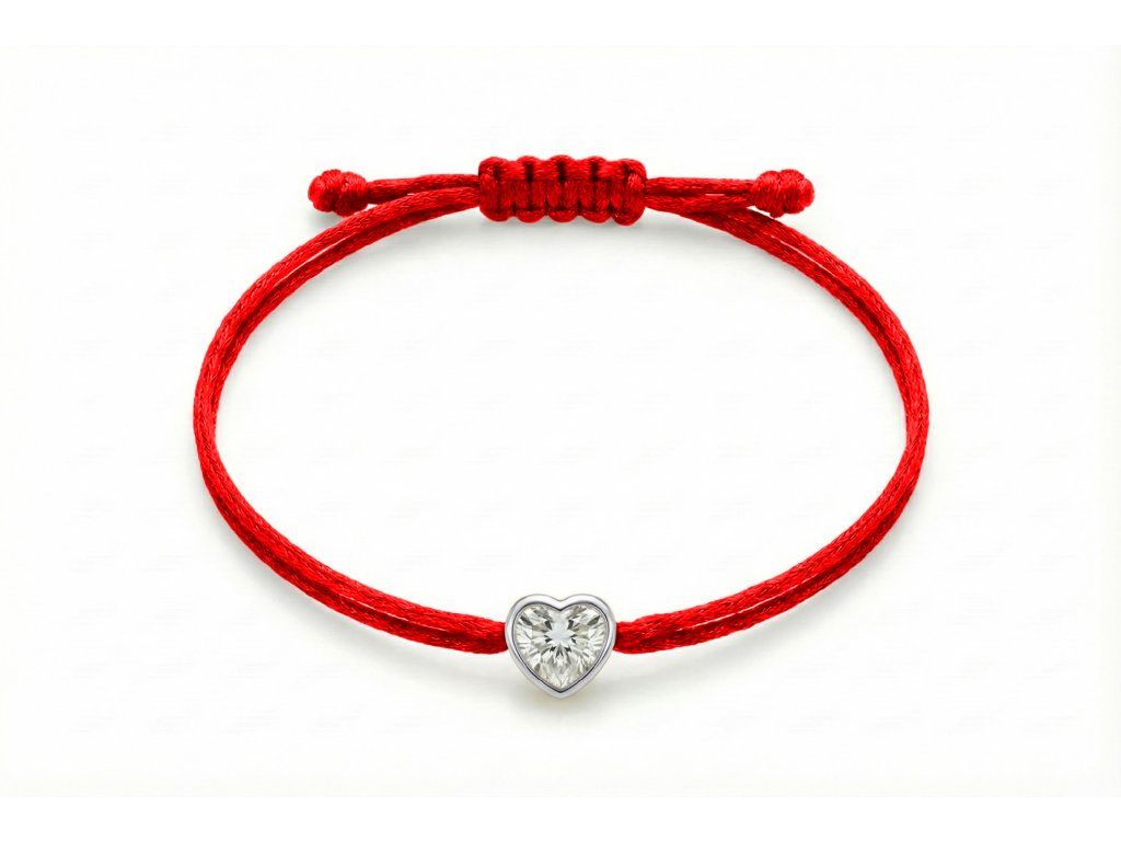 Červená šnúrka s briliantom, srdiečko 0,10ct.