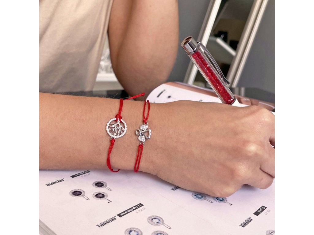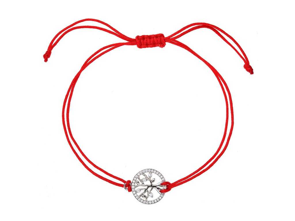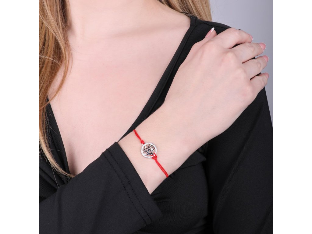 Červený náramok proti urieknutiu strieborný strom života sa zirkónmi 13021.3