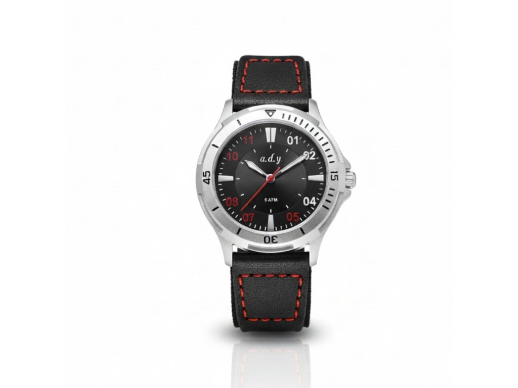 Detské hodinky sú ideálnou voľbou pre malých dobrodruhov, ktorí chcú mať čas vždy pod kontrolou. Športovo ladený dizajn v kombinácii čierneho ciferníka, výrazných číslic a kontrastného prešívania remienka pôsobí dynamicky a štýlovo.
