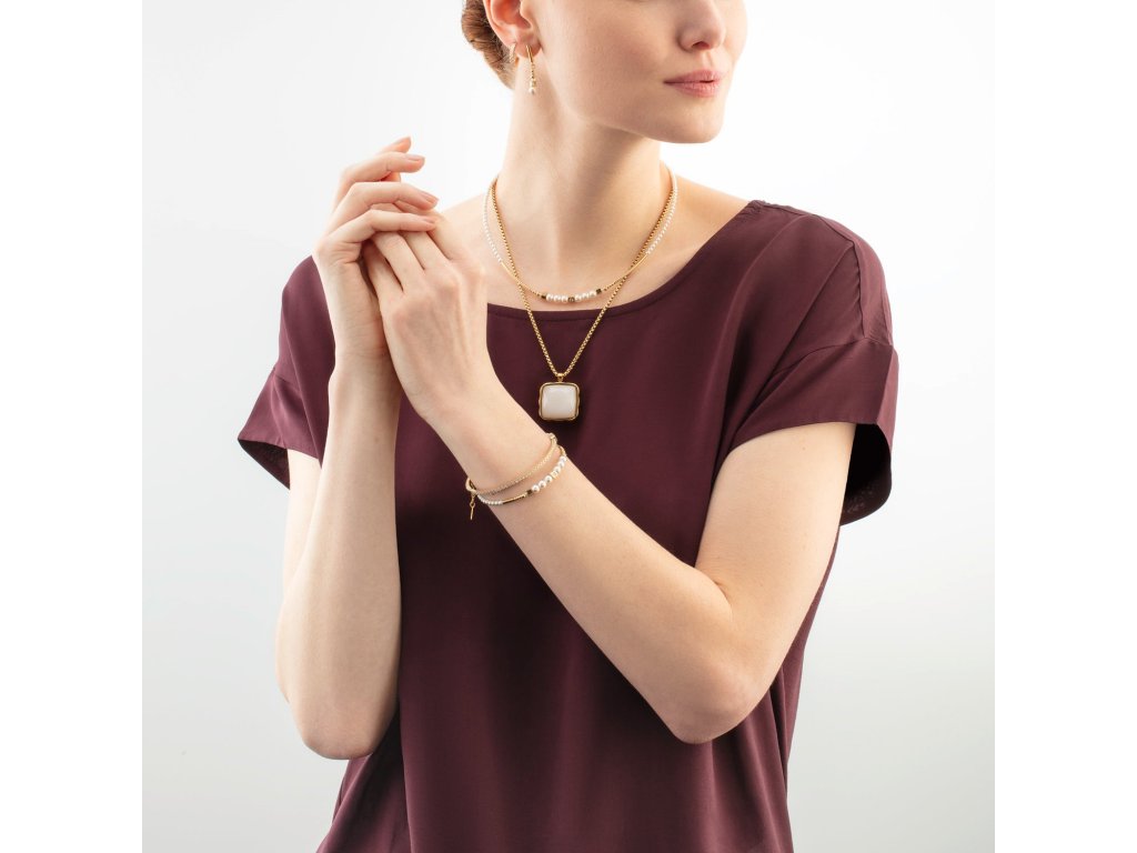 COEUR DE LION Shimmering Princess Pearls – zlatý náhrdelník s perlovým leskom. Jemný, ženský a zároveň výrazný – tento náhrdelník je dokonalým spojením klasickej krásy a moderného dizajnu. Kombinuje žiarivé perly Crystal Pearls by Swarovski® s elegantnými prvkami z nerezovej ocele v zlatom prevedení a vytvára harmonický šperk pre každú príležitosť.