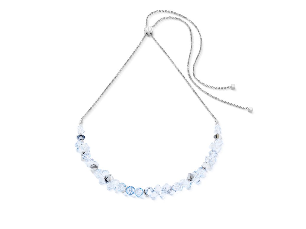 Dynamické usporiadanie kryštálov vytvára charakteristický „tancujúci“ efekt, ktorý definuje kolekciu. Retiazka z nehrdzavejúcej ocele v chladných tónoch zvyšuje čistotu kryštálov a poskytuje rafinovaný kontrast medzi moderným minimalizmom a žiarivým leskom.