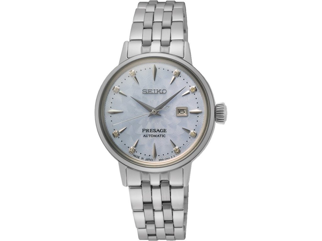 Kolekcia Seiko Presage Cocktail Time spája eleganciu japonského hodinárstva s inšpiráciou svetom koktailov. Model Skydiving SRE007J1 zaujme 30,3 mm puzdrom z nerezovej ocele, kombinujúcim lesk a mat, a doplneným o päťradový kovový náramok s preklápacou sponou.