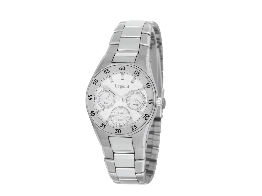 Športovo-elegantné dámske hodinky LEGEND 1C461 v striebornom tóne. Vďaka tomuto modelu sa ani ženy, ktorým vyhovujú menšie rozmery, nemusia vzdať chronografového typu hodiniek. Značka LEGEND vytvorila chronograf určený aj pre menšie, ženské ruky. Na ciferníku bielej a striebornej farby sa okrem ukazovateľa času, nachádza aj ukazovateľ dátumu, dní v týždni a sekúnd. To všetko v elegantnom dizajne a kvalitnom nemeckom spracovaní!