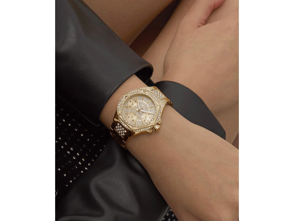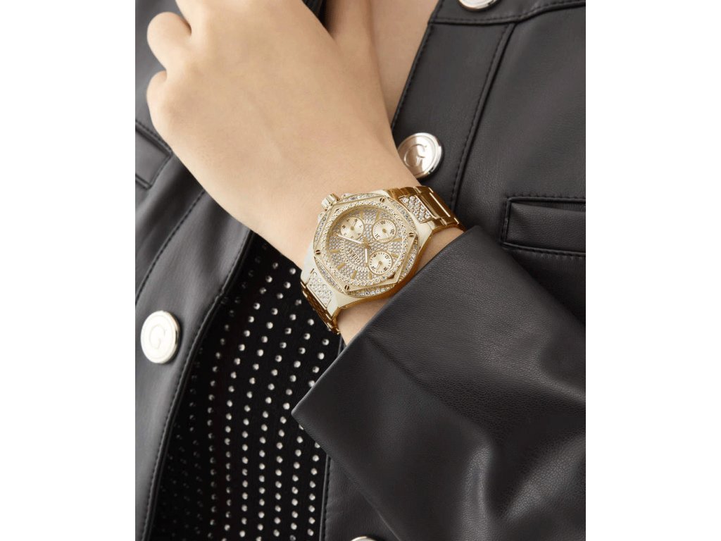 Dámske hodinky v zlatej farbe s kamienkami GUESS ENVY GW0878L2