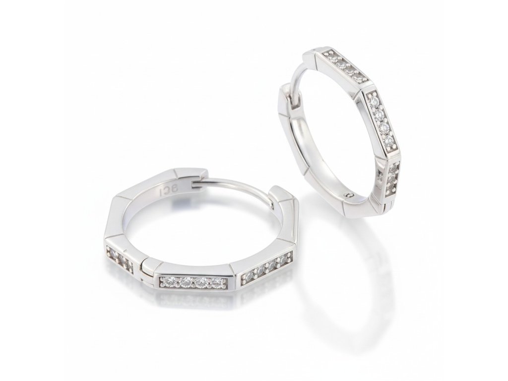 Dámske strieborné hranaté kruhové náušnice so zirkónmi EZB111416