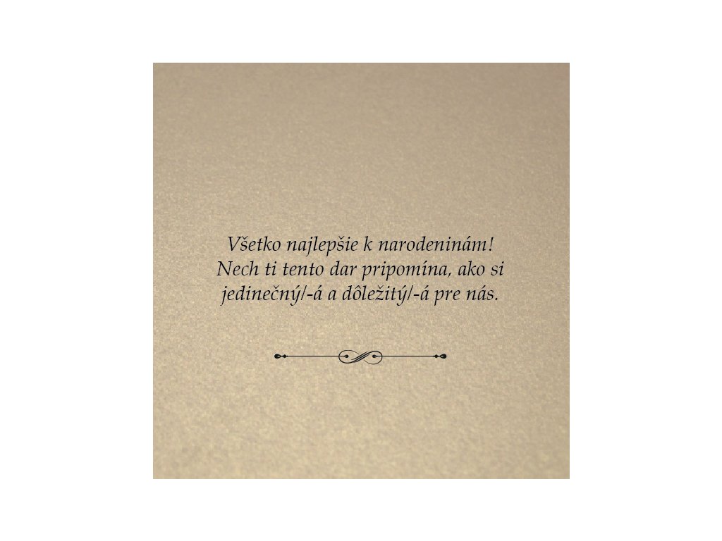 Darčeková karta s narodeninovým odkazom, ktorá vyjadruje uznanie a výnimočnosť obdarovanej osoby. Ideálny doplnok k šperku ako osobné a milé prianie k narodeninám.