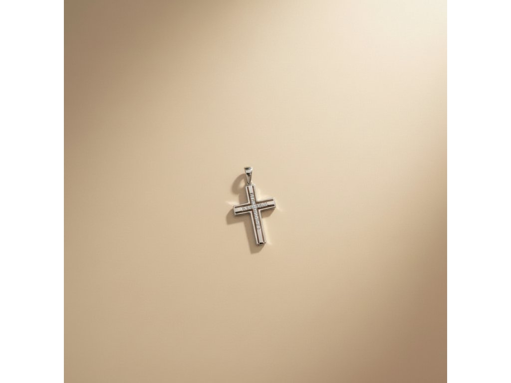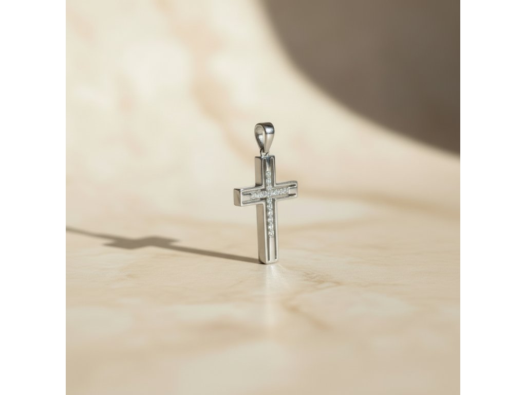 Briliantový prívesok v tvare kríža z 14K bieleho zlata 1,20g