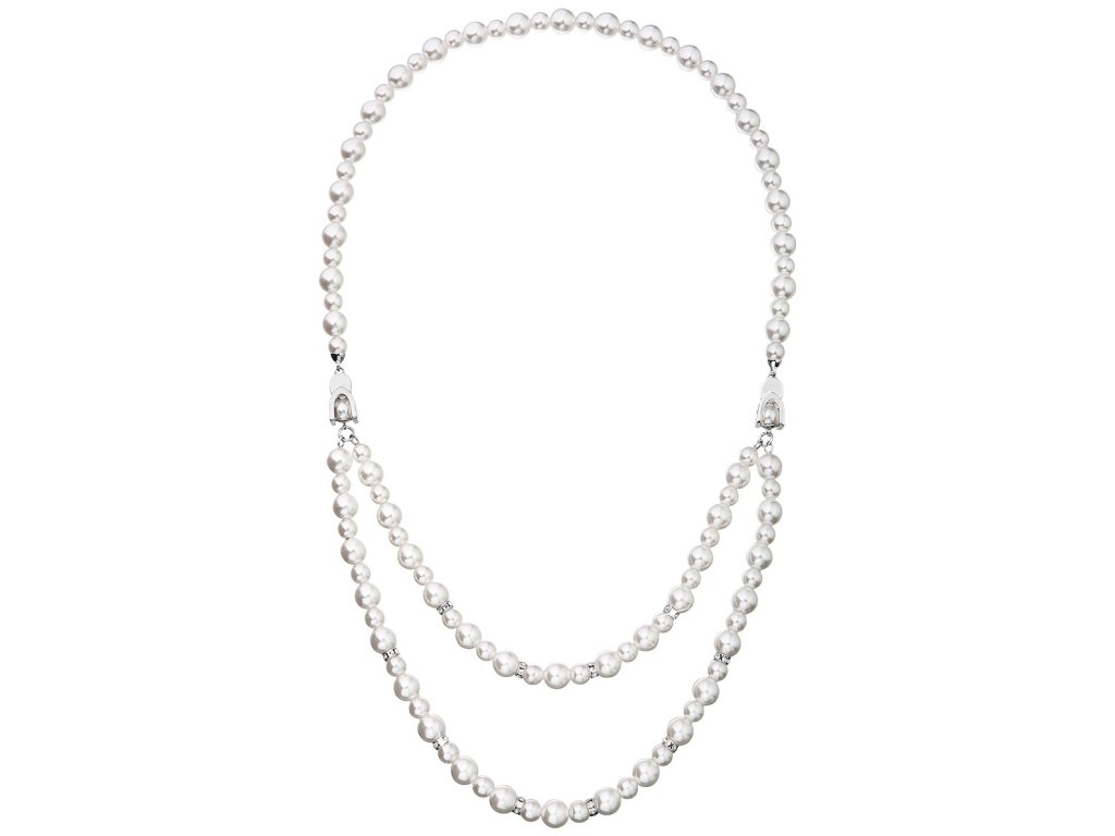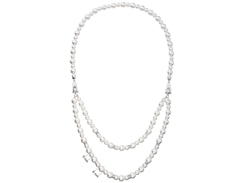 Dvojitý perlový náhrdelník 32040.1 v celkovej dĺžke 72 cm je poskladaný z rôzne veľkých bielych periel, medzi ktoré sú navlieknuté okrúhle rondelky zdobené bielymi Swarovského krištáľmi. Náhrdelník sa taktiež pýši zaujímavo riešeným zapínaním s bezpečnostnou poistkou. Na zapínanie náhrdelníka bolo použité striebro rýdzosti 925/1000, ktoré prešlo úpravou ródiom. Ródium striebro ochráni pred sčernením, zažltnutím a poškrabaním. Náhrdelník je vhodný aj pre alergikov, neobsahuje totiž nikel.