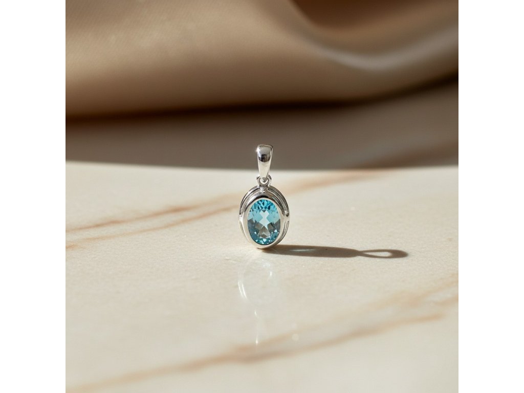 Elegantný prívesok s topásom z 14k bieleho zlata 0,55g