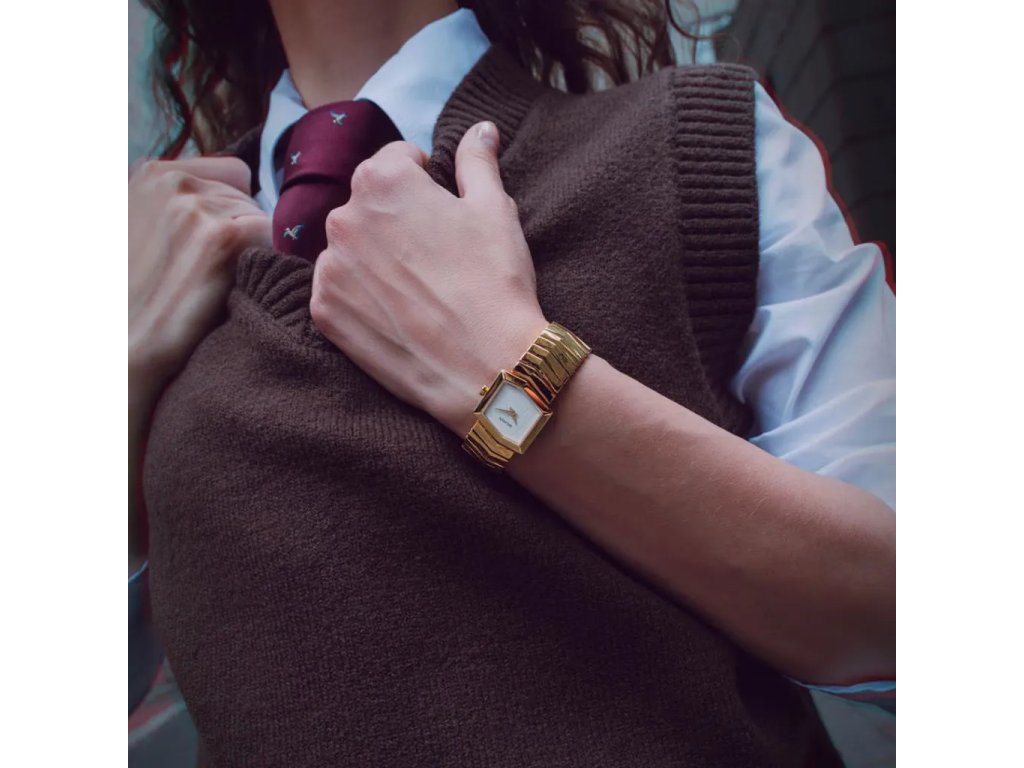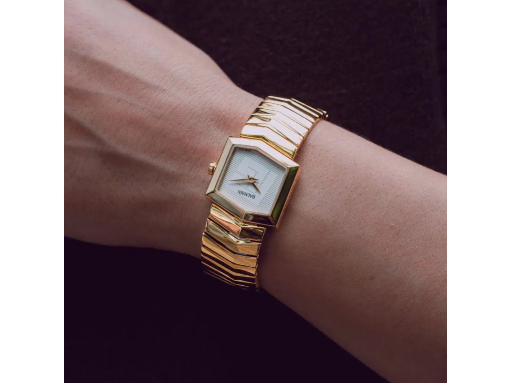 Model Balmain Taffetas Mini B4650.33.28 je dokonalým spojením šperku a hodiniek. Jemné, luxusne pôsobiace puzdro s unikátnym 22,5 mm tvarom okamžite zaujme, rovnako ako výrazný kovový náramok so vzorom pripomínajúcim tkanú textúru „taffetas“. Žlté zlátenie na puzdre a žlté zlátenie na náramku pôsobí moderným a sofistikovaným dojmom.