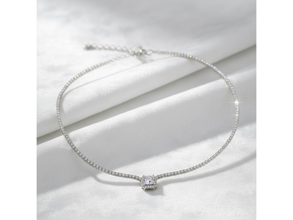 Elegantný žiarivý náhrdelník bohato osadený zirkónmi NZB106033