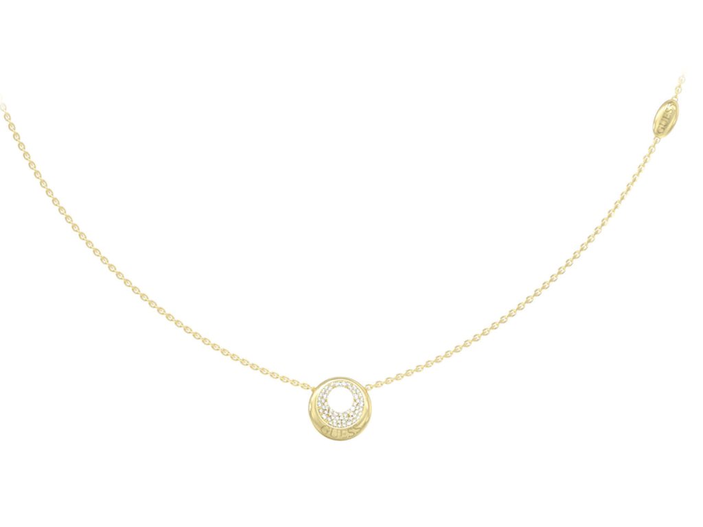 Oceľový náhrdelník v zlatom prevedení Guess Moon Drops JUBN06245JWYGT/U