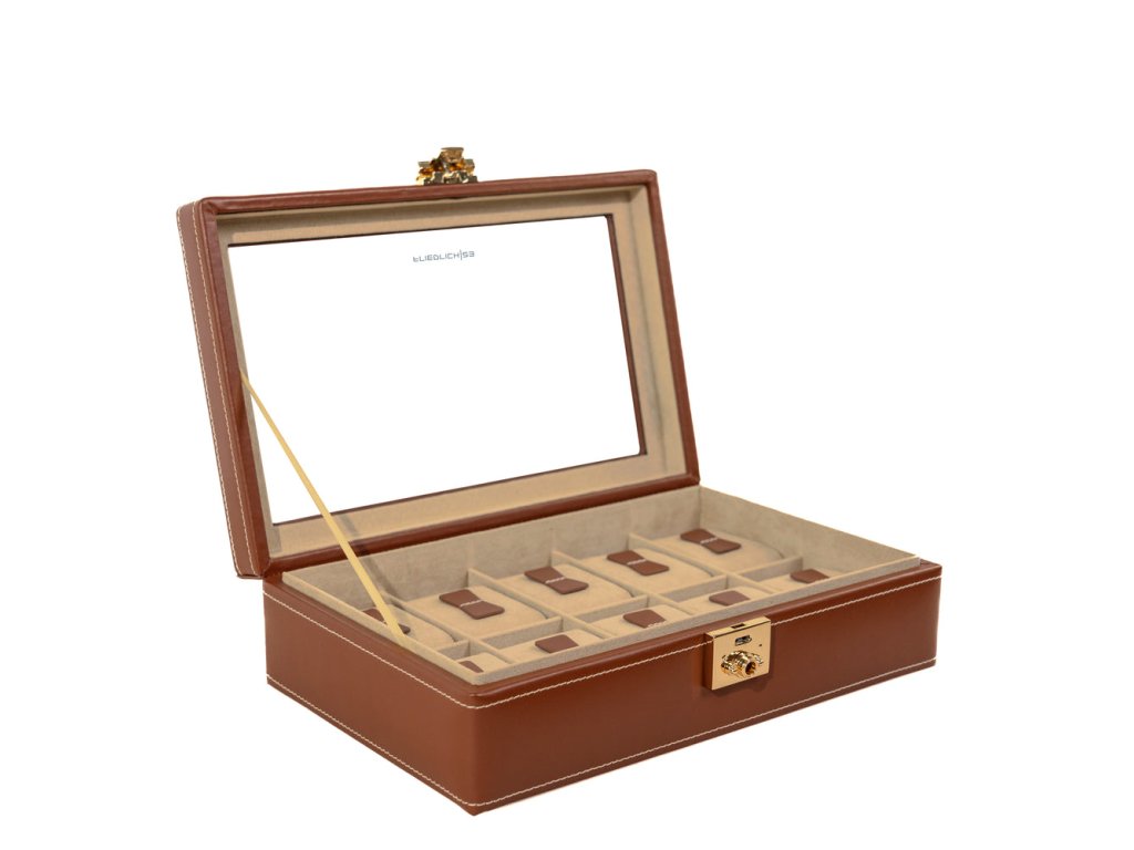 Hnedá kazeta na hodinky z pravej kože na 10ks hodín Friedrich|23 26215-3