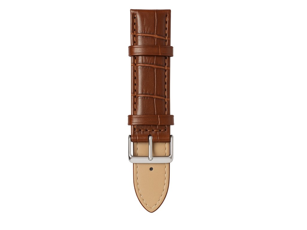 Kožený remienok na hodinky hnedej farby so vzorom krokodílej kože je vyrobený z genuine leather (pravá koža). Vyznačuje sa elegantným vzhľadom, jemným leskom a príjemným komfortom pri nosení.