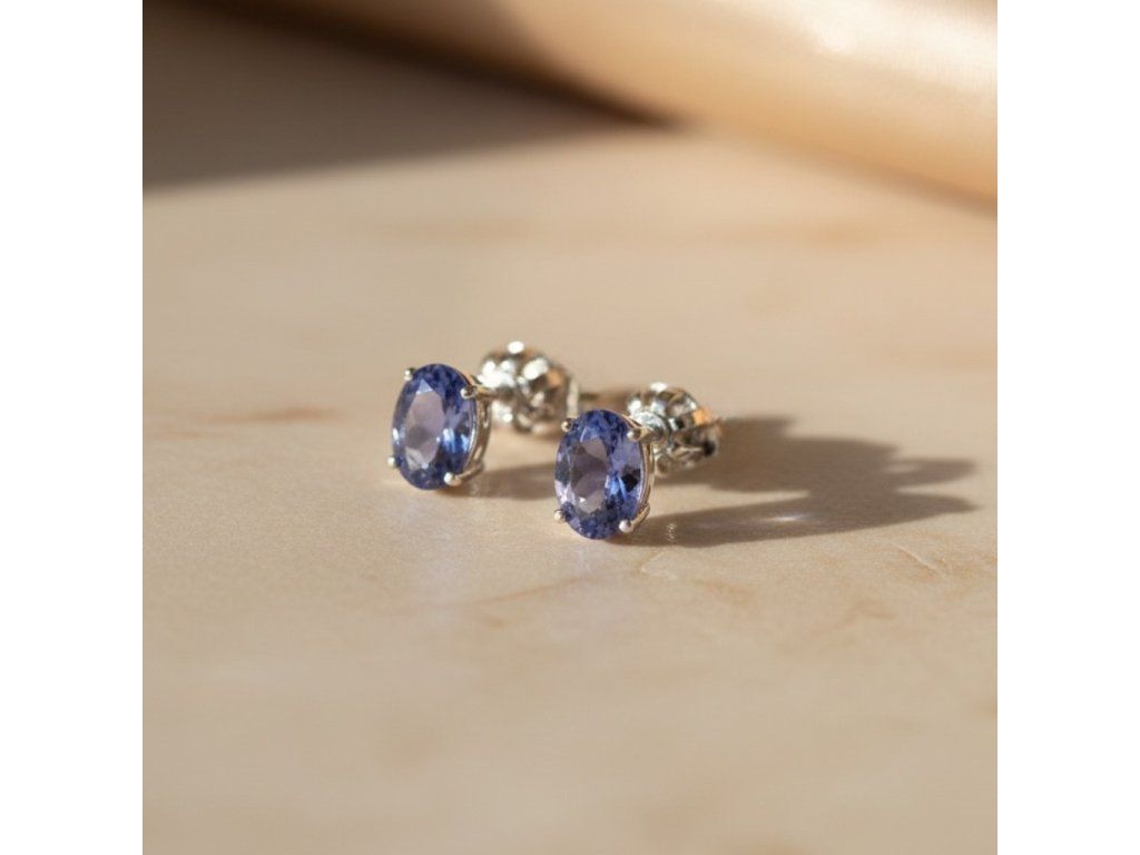 Jemné napichovacie náušnice s Tanzanitom zo 14K zlata