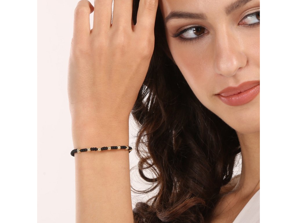 Kabbalah náramok čierny so zlatými guličkami 93T00101 black