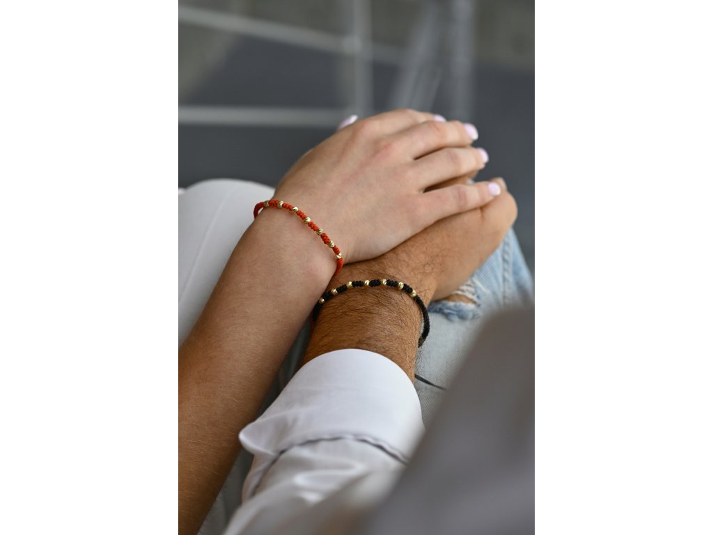 Tento Kabbalah náramok s čiernou šnúrkou a ozdobnými guličkami zo 14-karátového zlata ponúka elegantné spojenie ochrannej symboliky a luxusu. Čierna farba predstavuje silu a stabilitu, zatiaľ čo zlaté guličky dodávajú náramku nádych exkluzivity. Skvelý doplnok pre mužov aj ženy, ktorí chcú posilniť osobnú energiu a štýlovo vyjadriť svoju vieru v spiritualitu. Náramok "Kabbalah" 93T00102 čiernej farby je vhodným darčekom ako pre mužov, tak pre ženy.