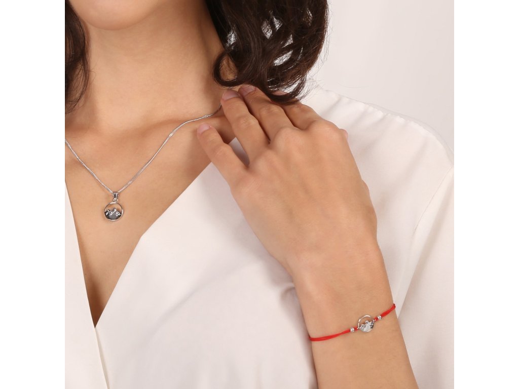 Náramok je vyrobený zo striebra rýdzosti 925/1000 . Na jeho povrchu je vrstva ródia, ktorá chráni šperk pred sčernením a zaisťuje jeho dlhotrvajúci lesk. Jemná kontúra hôr elegantne kontrastuje s červenou retiazkou, ktorá je nastaviteľná až do dĺžky 25 cm. Šperk pôsobí jemne a zároveň veľmi osobito - ideálny pre milovníkov prírody, dobrodružstva a slobody.