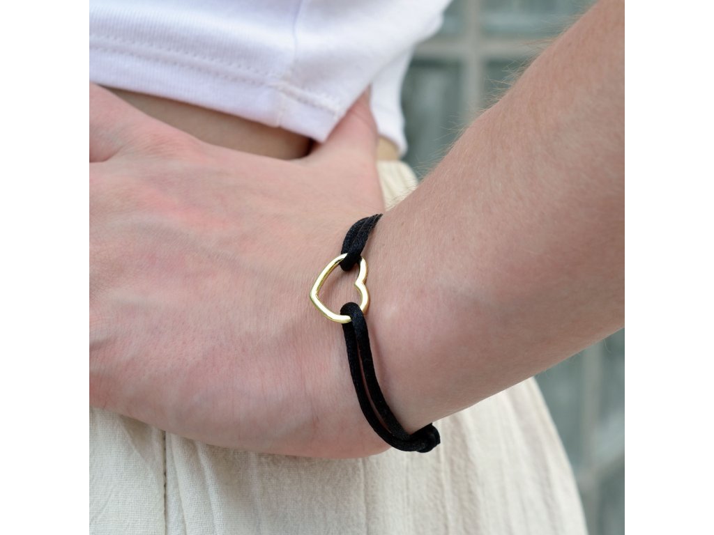 Kabbalah náramok s pozláteným srdcom 13093.3 black