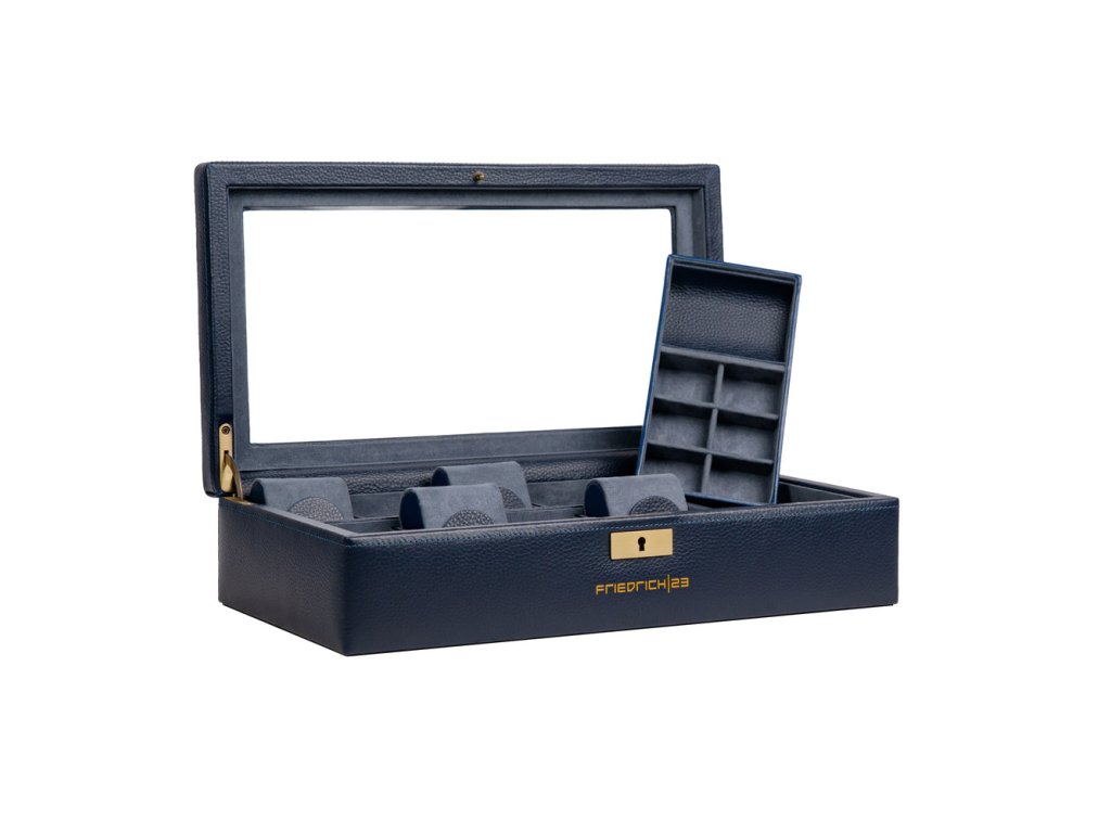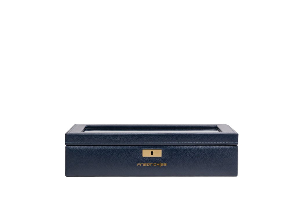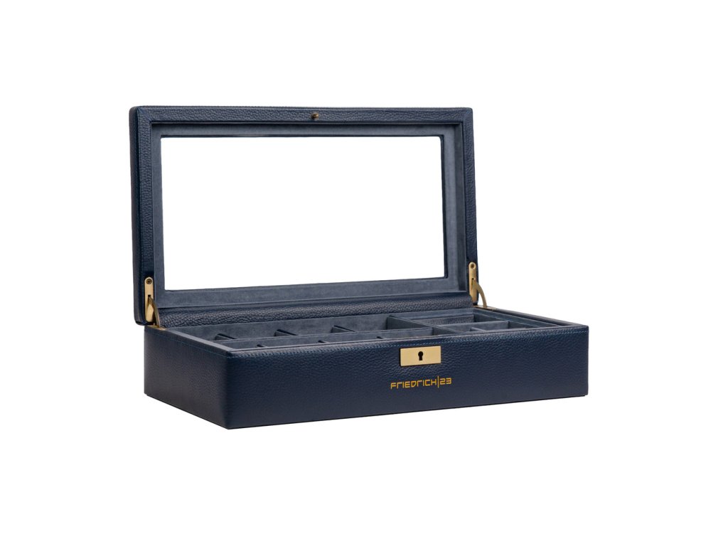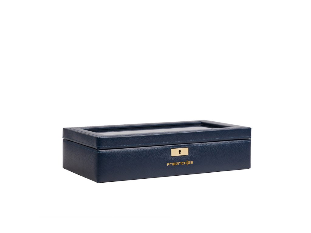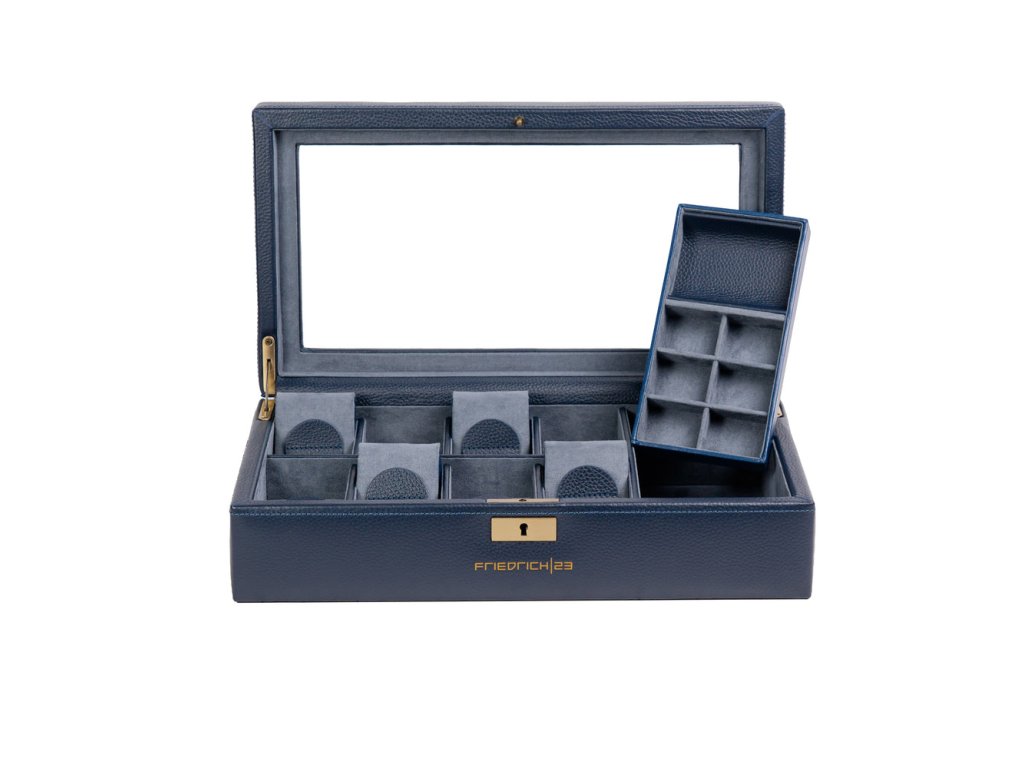 Kožená modrá kazeta so sklom na hodinky - 8 hodiniek