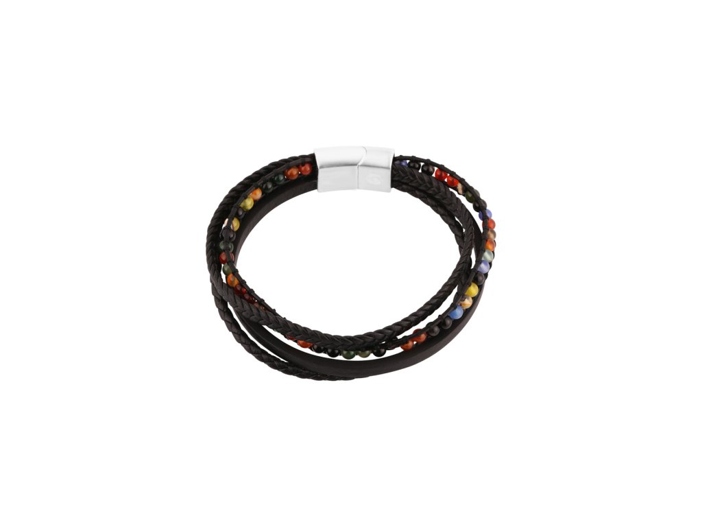 Kožený pánsky náramok s farebnými korálkami 43087.3 21 cm