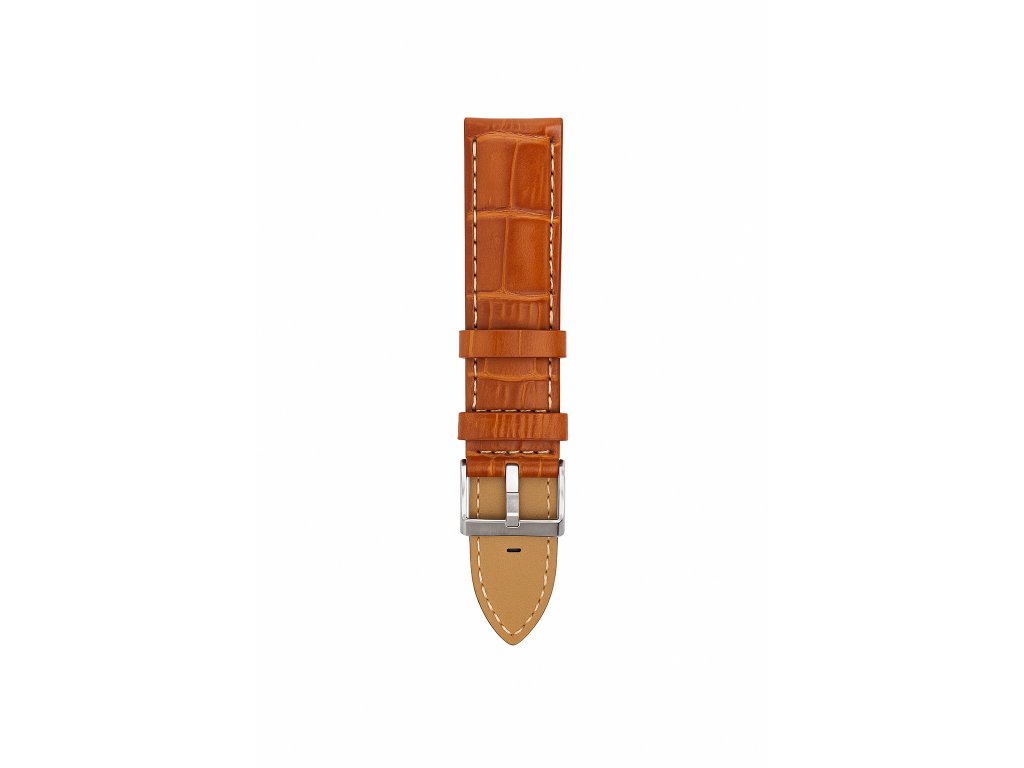 Kožený remienok na hodinky hnedej farby so vzorom krokodílej kože je vyrobený z kvalitnej genuine leather (pravá koža). Vyznačuje sa elegantným vzhľadom, jemným leskom a príjemným komfortom pri nosení.