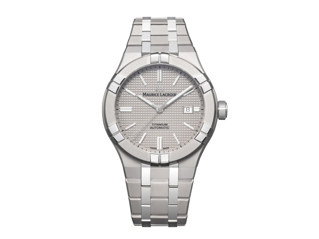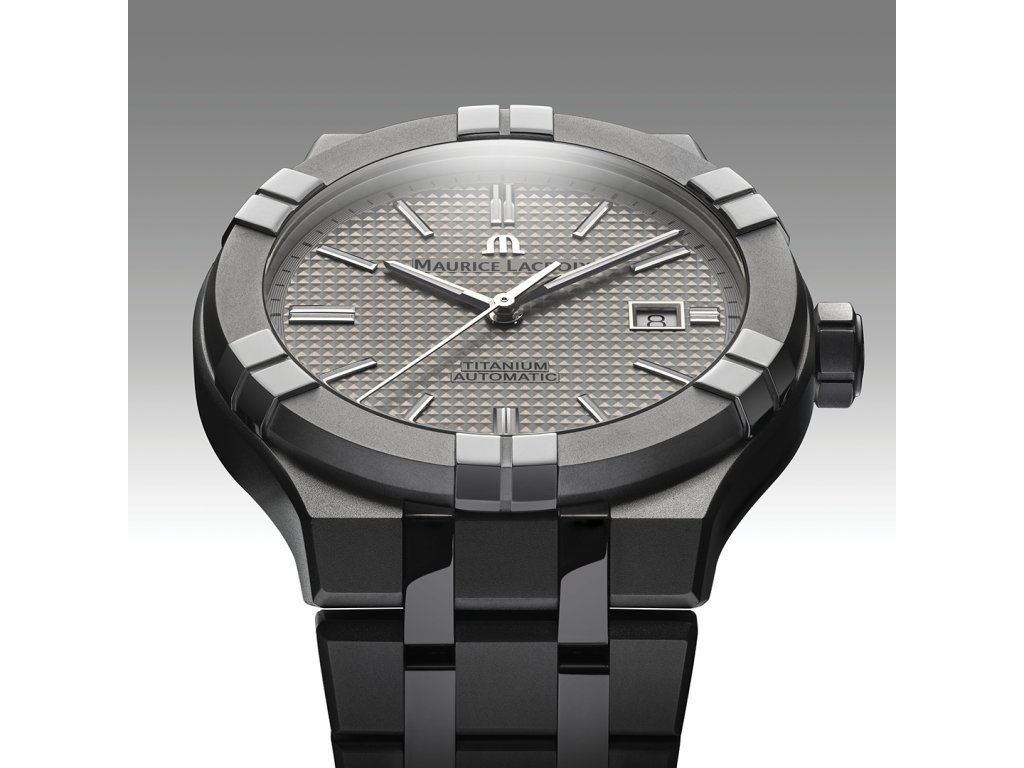 Maurice Lacroix Aikon Automatic Titanium AI6008-TT032-430-1 sú pánske švajčiarske hodinky vyrobené z ľahkého a hypoalergénneho titánu triedy 5. Model zaujme elegantným športovým vzhľadom a strieborným gilošovaným ciferníkom, ktorý chráni antireflexné zafírové sklíčko. O presný chod sa stará automatický strojček ML115 so 38-hodinovou rezervou. Vysoká vodotesnosť 200 M a luminiscencia Super-LumiNova robí z tohto modelu ideálne hodinky na každodenné nosenie aj športové aktivity.