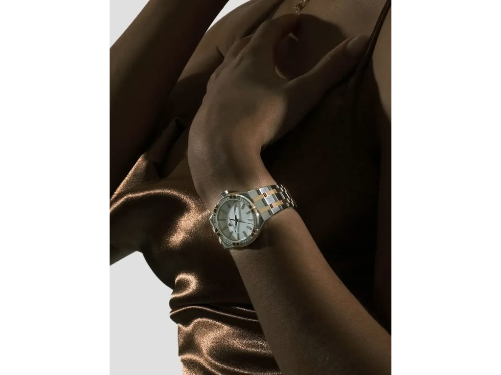 🔹 Biely perleťový ciferník s diamantovými indexmi – jemnosť a ženská noblesa