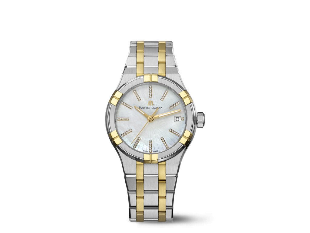 Maurice Lacroix Aikon Ladies AI1106 v zlatom prevedení je ideálnou voľbou pre ženy, ktoré si potrpia na štýl, kvalitu a výrazný ženský šperk v podobe švajčiarskych hodiniek.