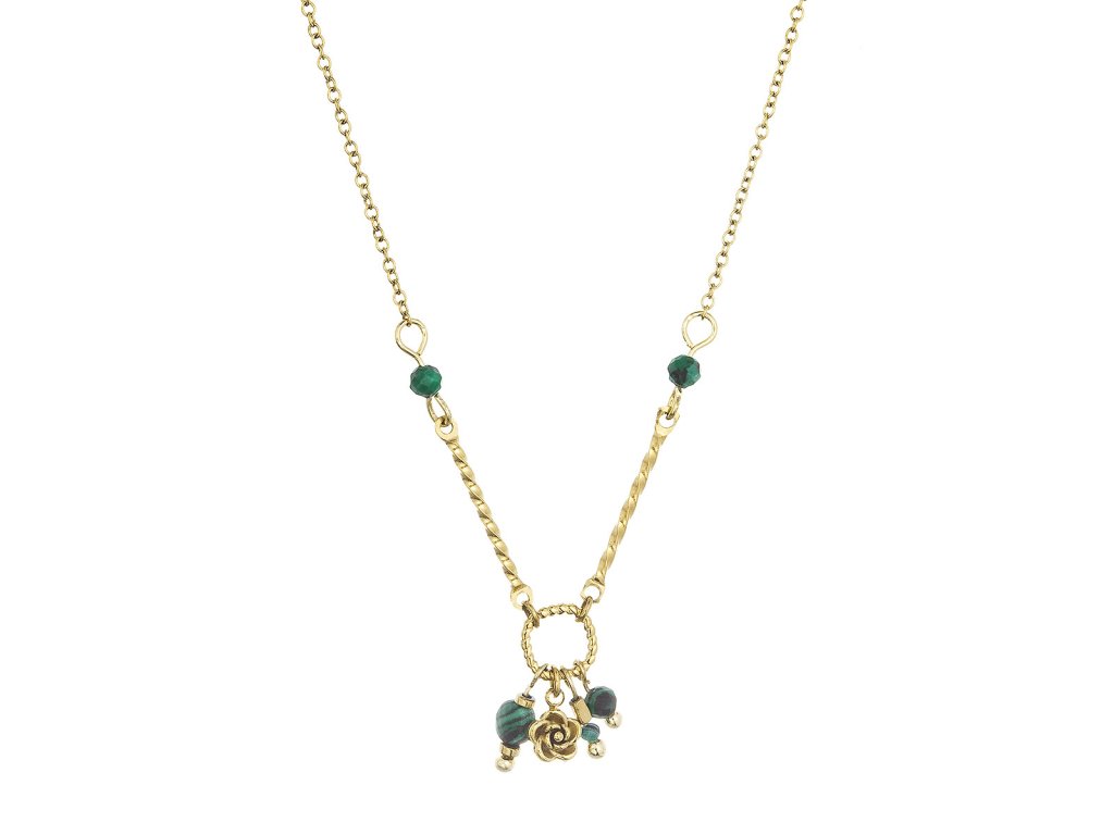 Náhrdelník oceľový s africkým malachitom 42032.3