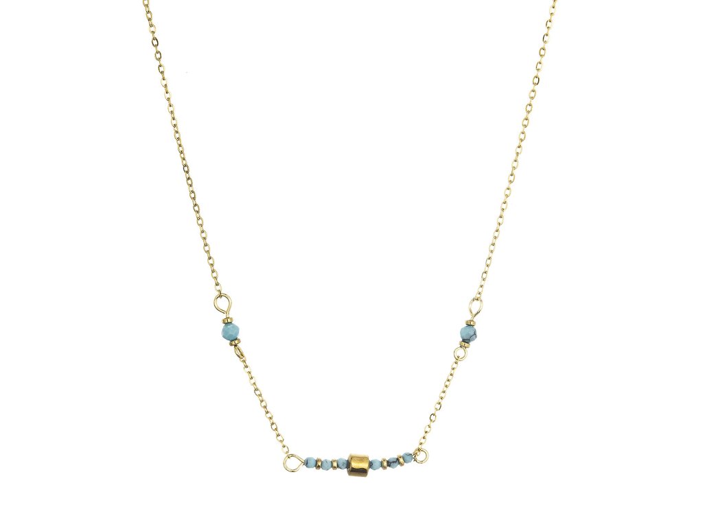 Náhrdelník oceľový s modrým tyrkysom 42035.3