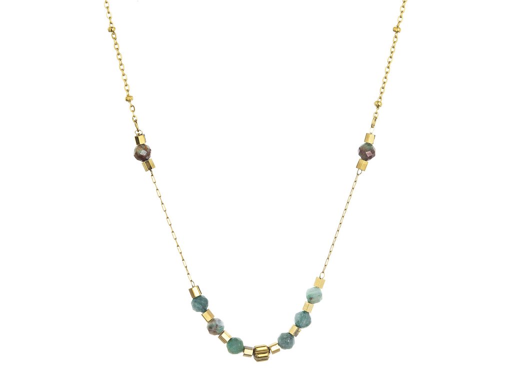 Náhrdelník oceľový so zeleným achátom 42028.3