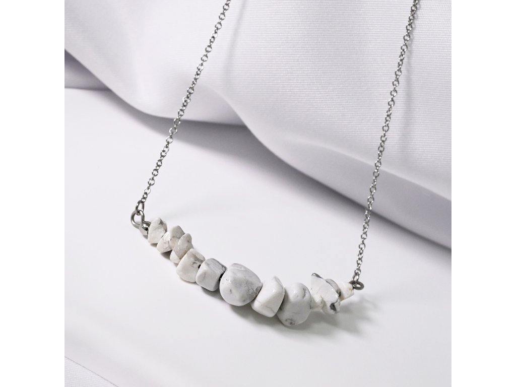 Náhrdelník s kameňom biely howlit 42037.1 oceľ