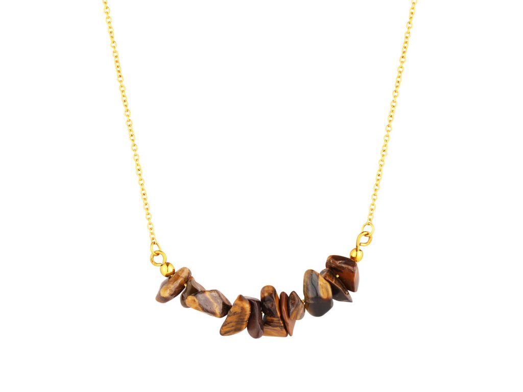 Oceľový náhrdelník s tigrím okom ponúka jedinečný dizajn vďaka nepravidelným tvarom kameňov. Každý kameň je starostlivo vybraný a usporiadaný podľa veľkosti, čo zaisťuje harmonický vzhľad. Oceľový základ je pozlátený, čo dodáva náhrdelníku luxusný vzhľad a zároveň zaisťuje jeho dlhú životnosť. Tento šperk je ideálny na každodenné nosenie aj špeciálne príležitosti.
