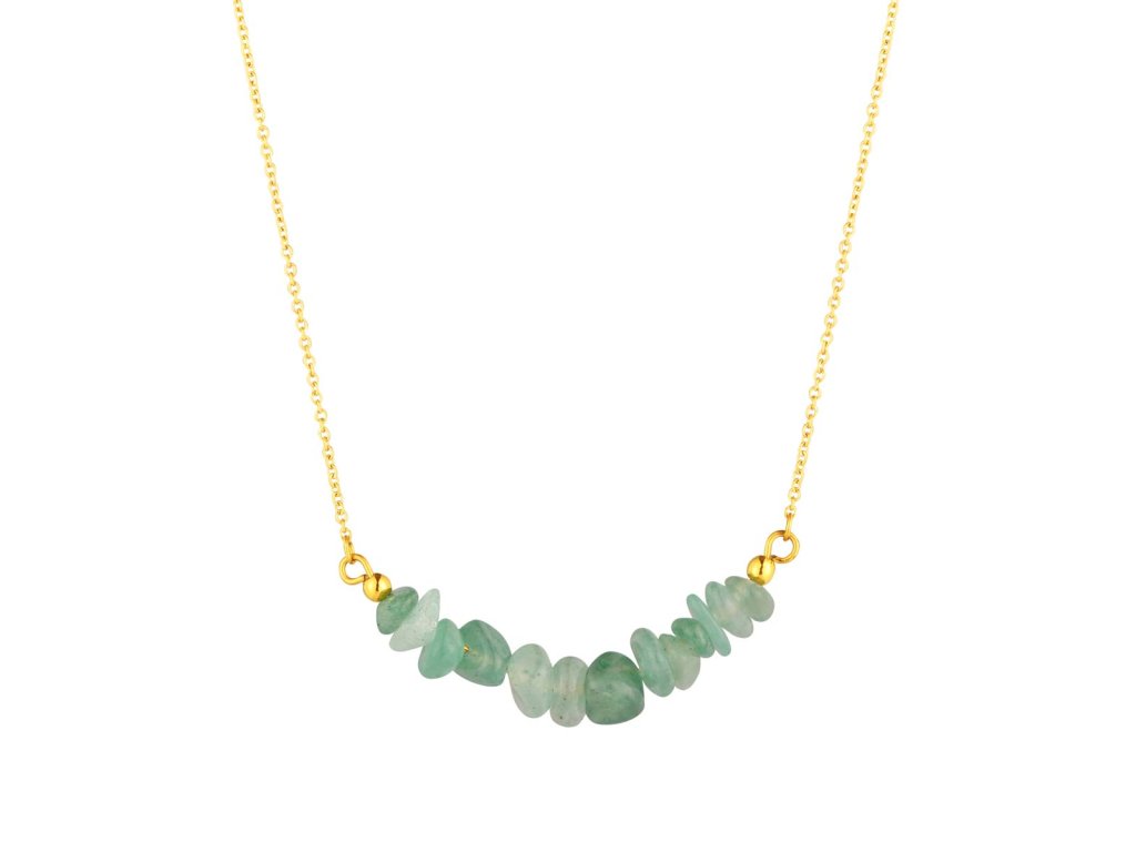 Náhrdelník so zeleným avanturínom ponúka jedinečný dizajn, ktorý zaujme na prvý pohľad. Nepravidelné tvary kameňov dodávajú šperku prirodzenú krásu a eleganciu. Jeho univerzálny štýl sa hodí ako na každodenné nosenie, tak na špeciálne udalosti. Avanturín je známy ako talizman šťastia, čo z neho robí ideálny doplnok pre každú ženu.