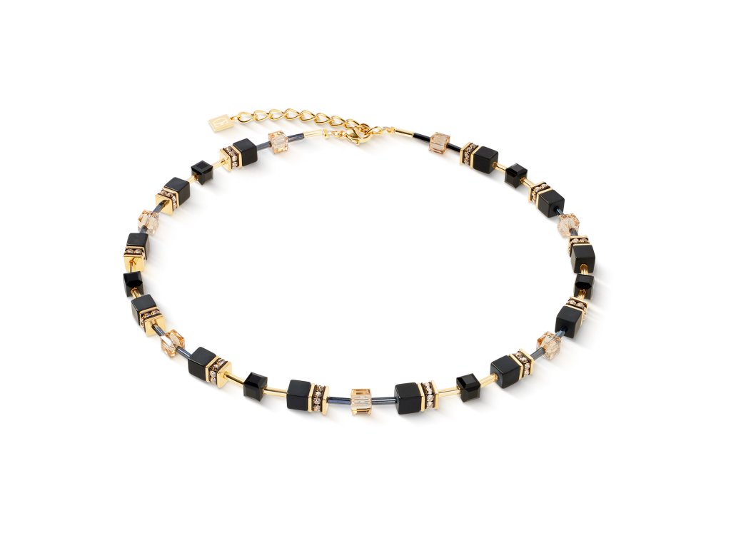 Elegantný. Výrazný. Nadčasový. Náhrdelník GeoCUBE® Onyx Black-Gold spája čistý dizajn s luxusnou farebnou harmóniou. Hlboký čierny onyx sa prelína so žiarivými krištáľmi a dopĺňajú ho jemne lesklé detaily z pozlátenej nerezovej ocele. Kombinácia čiernej a zlatej pôsobí ako moderná šperkárska poézia – ideálna na výnimočné príležitosti aj výrazné každodenné stylingy. Samozrejme, ručná výroba v Nemecku.