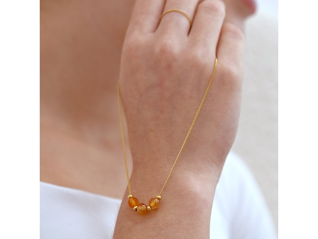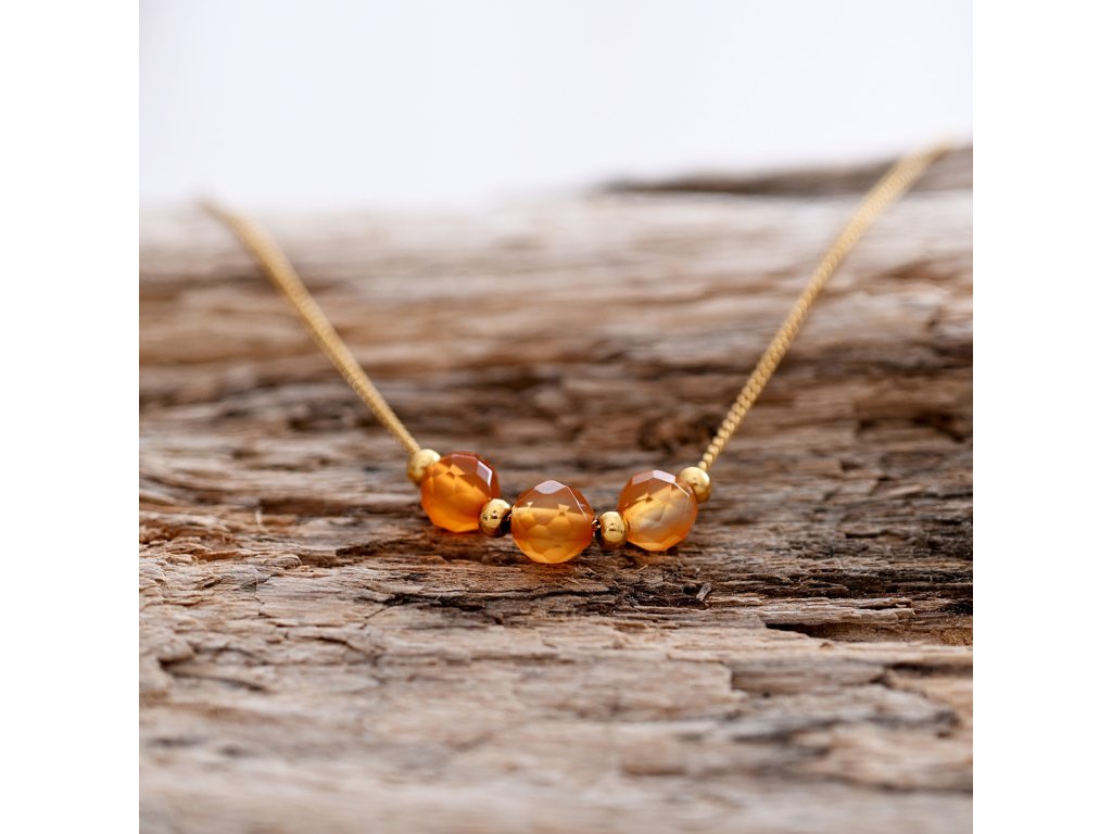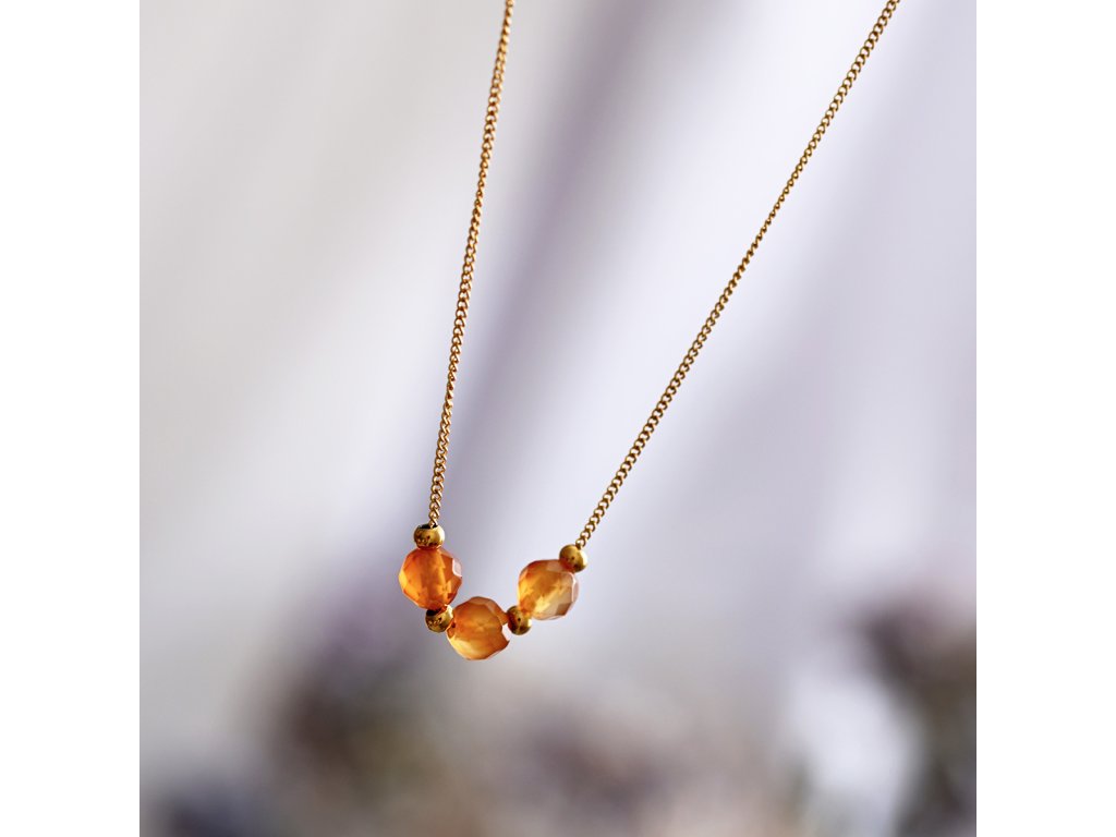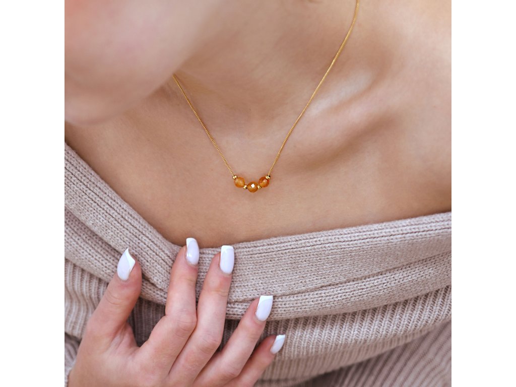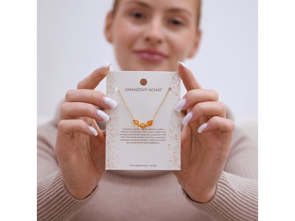 Náhrdelník s oranžovým achátom prináša unikátny vzhľad, ktorý pripomína jesenné lístie. Jeho žíhaná farba dodáva šperku živosť a energiu.