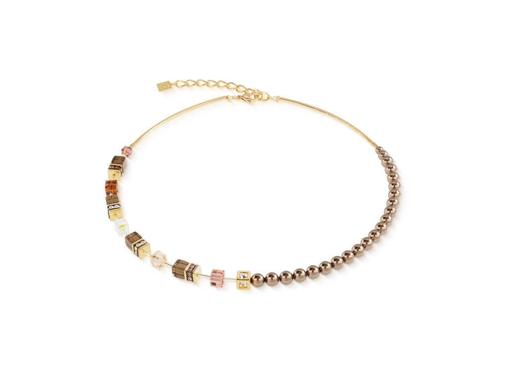 Fascinujúca hra tvarov, farieb a štruktúr. Náhrdelník GeoCUBE® Precious Fusion Pearls spája lesklé Crystal Pearls v trendovej farbe Mocha Mousse so zlatistými detailmi a ikonickými GeoCUBE® kockami – vytvorenými z dymového kremeňa a žiarivých Swarovski® krištáľov.