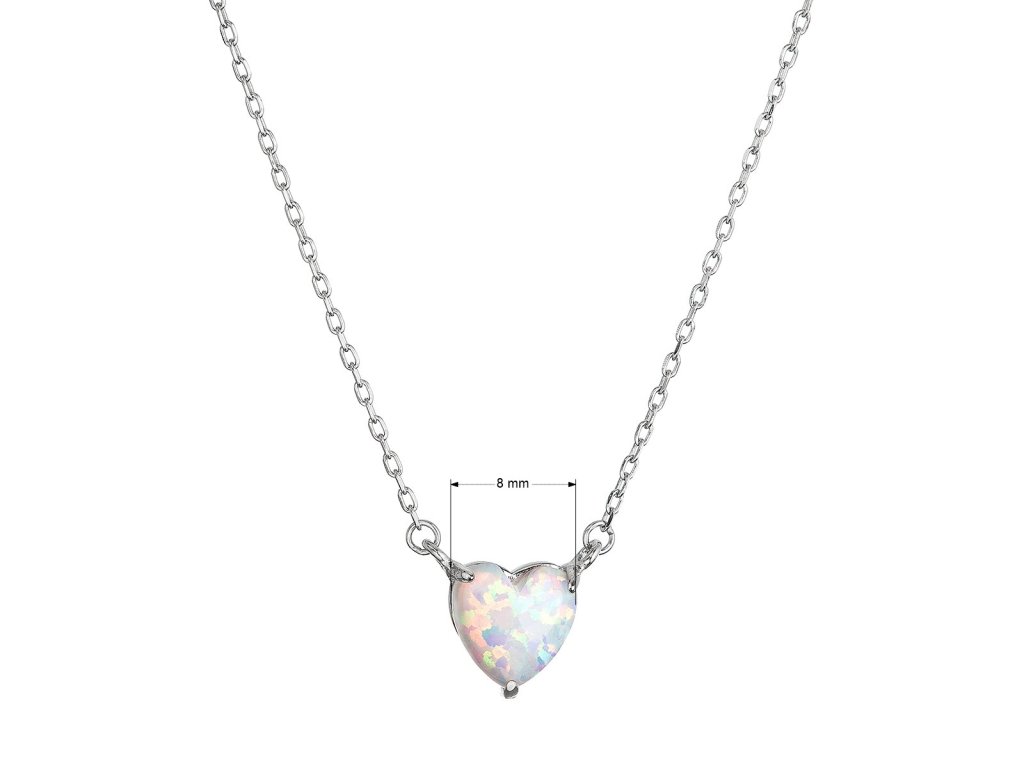 Srdce z bieleho syntetického opálu je precízne zasadené do lôžka z kvalitného striebra, čím vytvára harmonický celok plný lesku a jemnosti. Opál má charakteristickú dúhovú hru farieb , ktorá mení svoj nádych podľa uhla pohľadu – zakaždým vás tak prekvapí novým a neopakovateľným vzhľadom. Vďaka starostlivo vybranému materiálu bez niklu je náhrdelník šetrný k vašej pokožke.