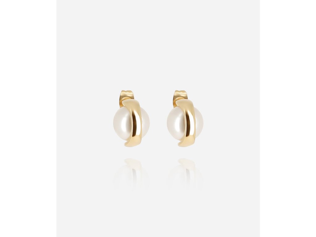 Kruhové náušnice z hladkej nehrdzavejúcej ocele pozlátené ionizáciou, ozdobené perlou vsadenou v zadnej časti kruhu.
