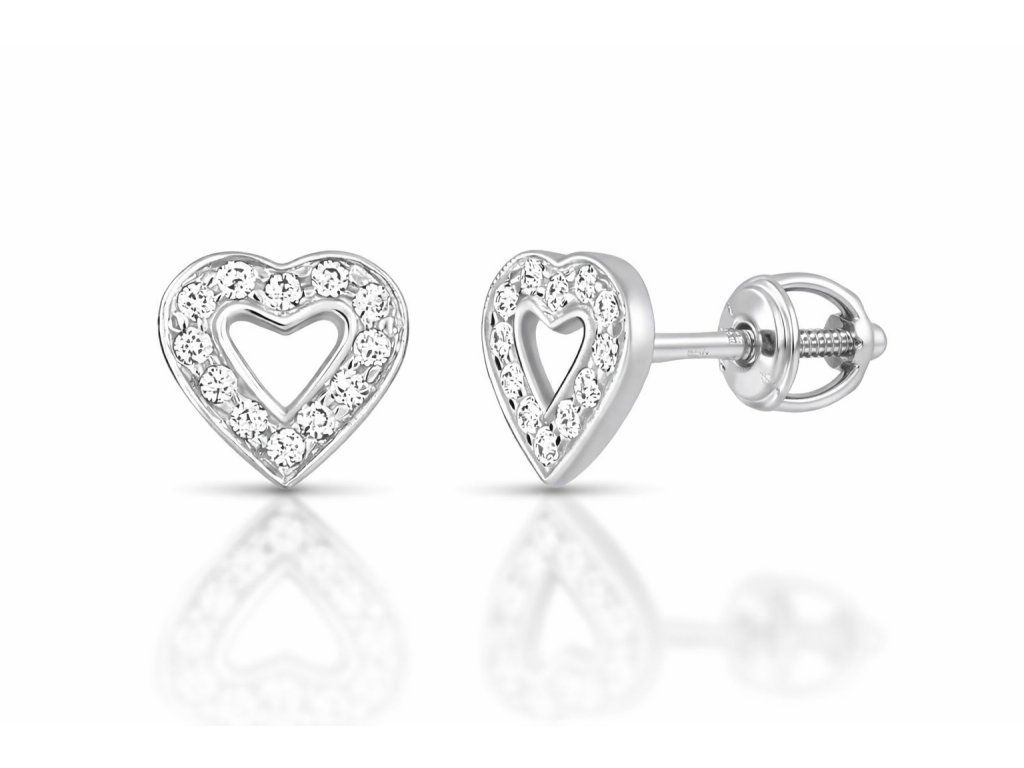 Napichovacie zirkónové náušnice, srdiečka z bieleho zlata, 8 x 8 mm